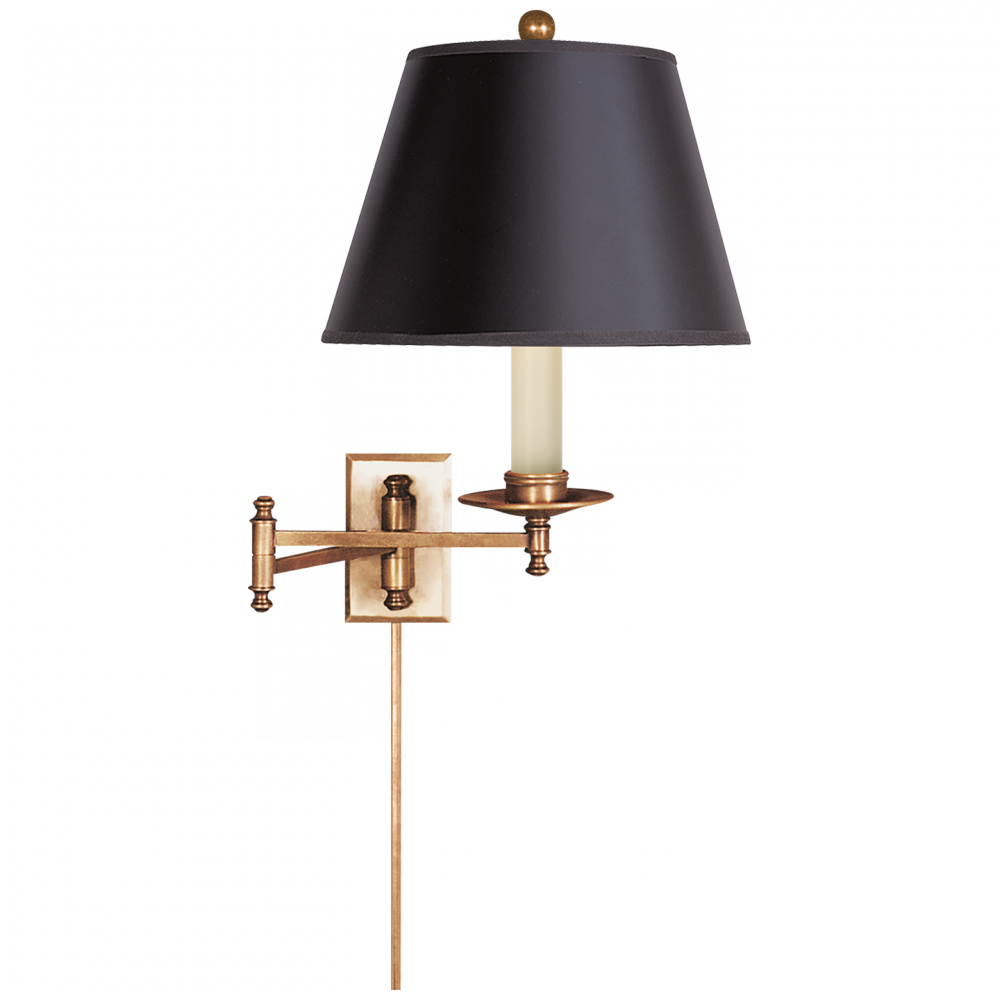 Dorchester Swing Arm in Antique-Burnished Brass with Black Shade