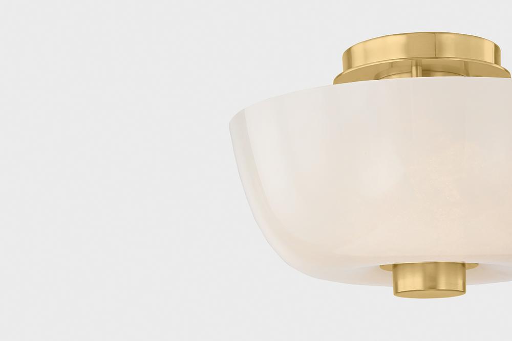 An organic beauty inspired by nature, the bubble-like silhouette of Dove glows from within. This sophisticated flush mount features an outer layer of unetched cloud glass over an inner cylinder of opal shiny glass. Accented with Aged Brass metalwork, Dove adds an artful quality to living and dining spaces.