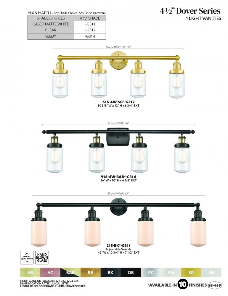 Innovations Lighting 214-SG-G311-LED - Dover - 4 Light - 49 inch - Satin Gold - Stem Hung - Adjustable Island Light
