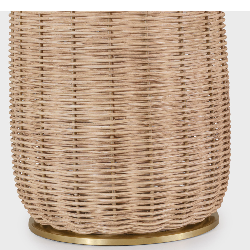 The warmth and familiarity of woven rattan take center stage in the Dumar table lamp by Thom Filicia. Modern shapes bring a fresh edge to classic textures. The table lamps will lend an effortless, organic feel to interior spaces, and can be used alone or in pairs to illuminate bedrooms, living rooms, dens and reading nooks alike.