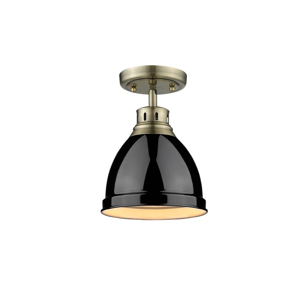 Duncan Flush Mount In Aged Brass With A Black Shade