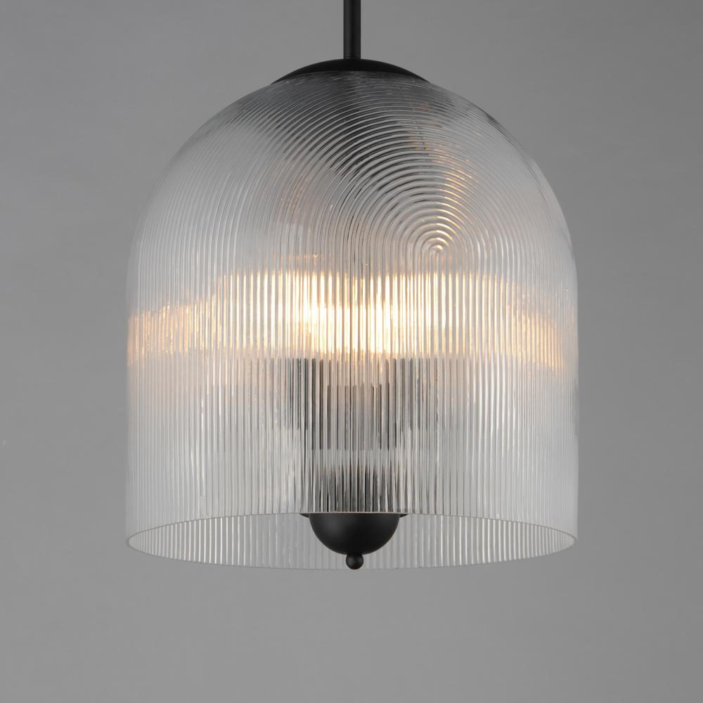 Featuring a concentric, semicircular ribbed glass pattern, this collection offers a blend of familiar design with contemporary flair. The deeply textured glass refracts light beautifully, diffusing glare while delivering ample functional illumination. Meta