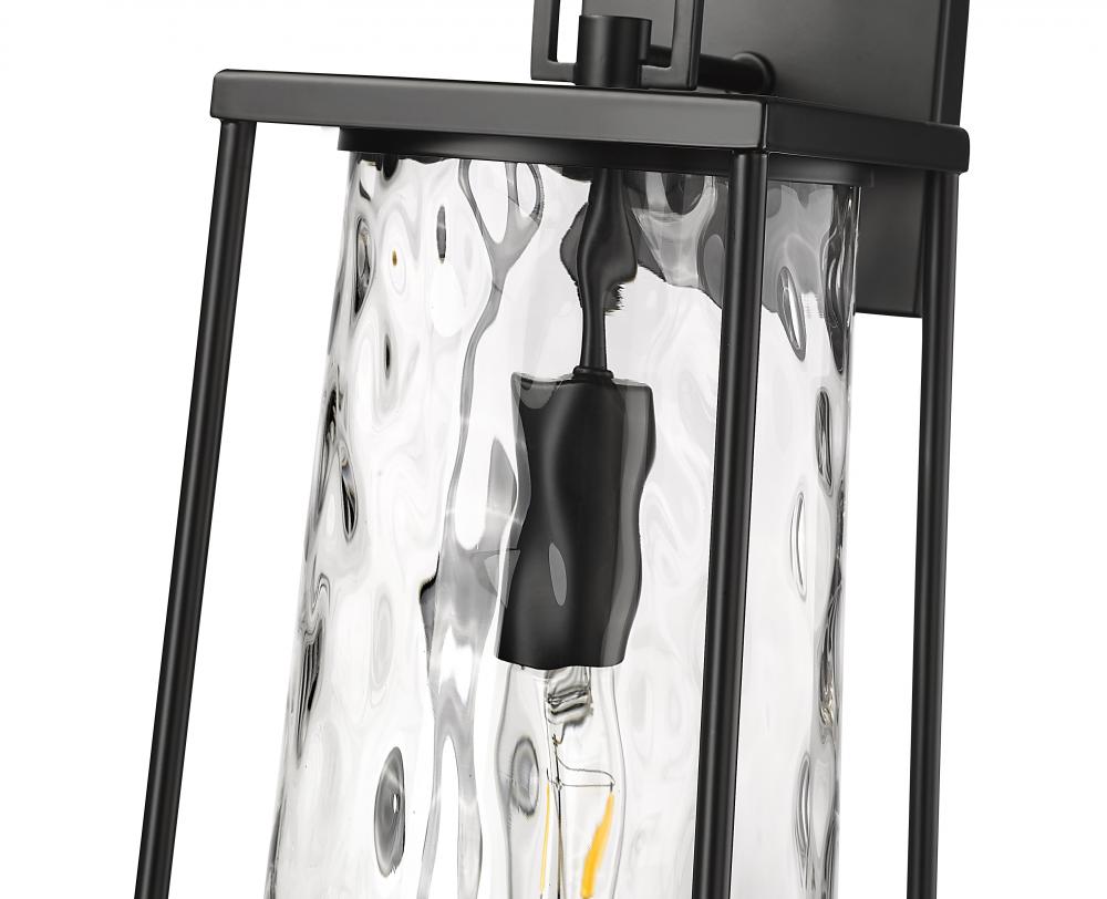 The Dutton Collection features classic lantern lines defined by a clear, water-textured glass cylinder. The design of the steel framework is just the right complement for any home, from Modern Farmhouses to Mid-Century Modern. These stylish outdoor fixtures are available in 1-light and 2-light options and finished in stylish powder coat black.