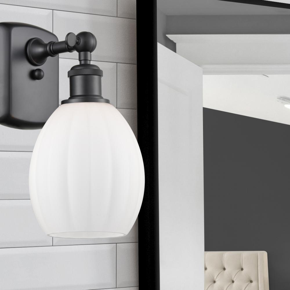 Eaton - 1 Light - 6 inch - Matte Black - Matte White Shade - Sconce