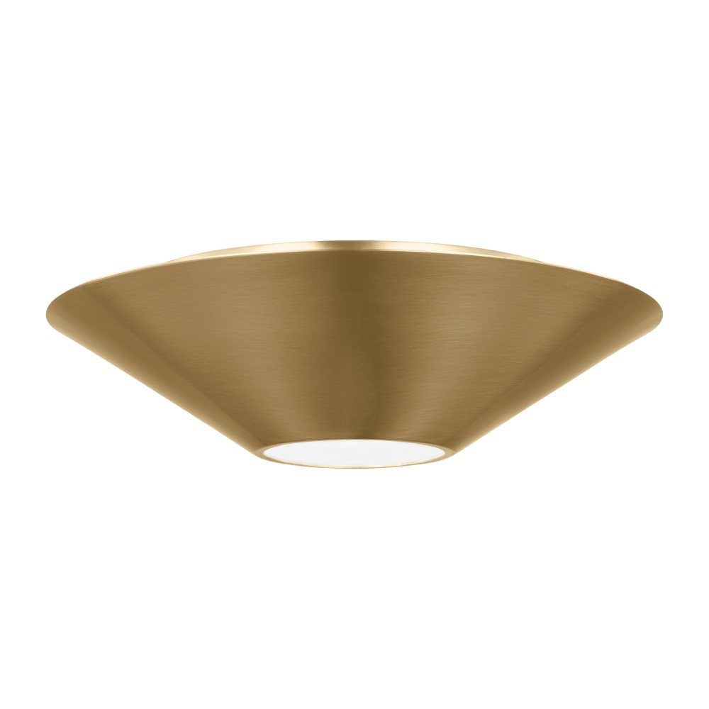 Crafted with Steel in a Burnished Brass finish with sandblast inside/clear outside glass shade