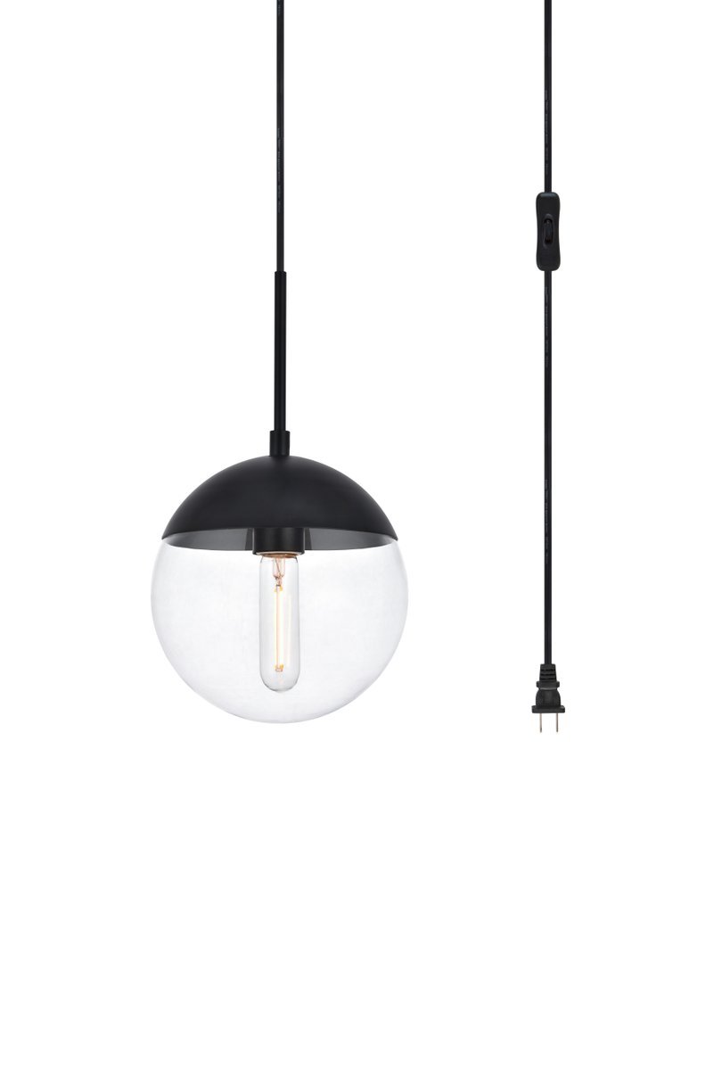 Eclipse 1 Light Black plug in pendant With Clear Glass