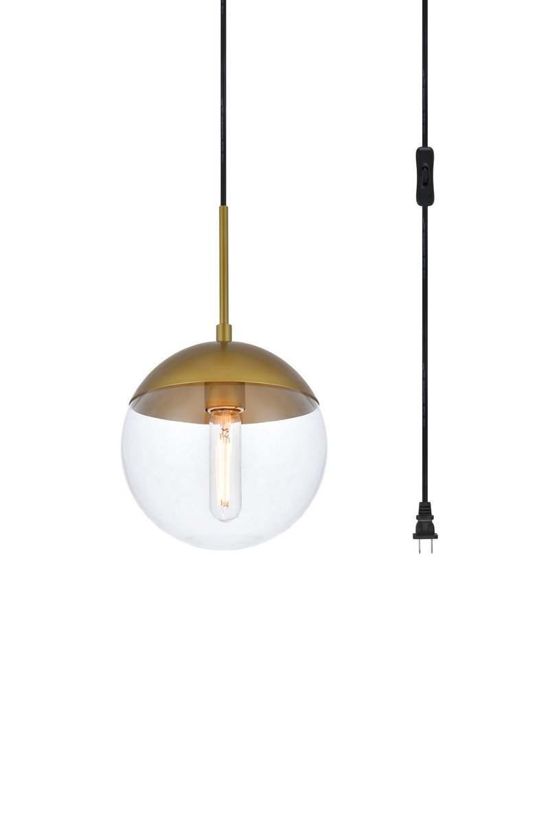 Eclipse 1 Light Brass plug in pendant With Clear Glass