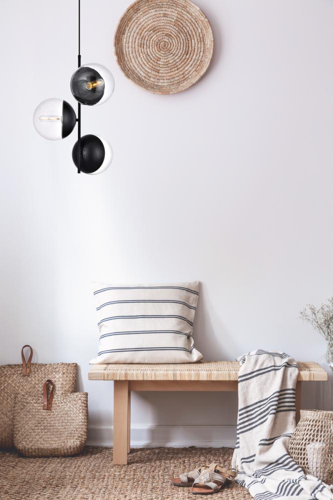 Elegant LD6129BK - Eclipse 3 Lights Black Pendant With Clear Glass