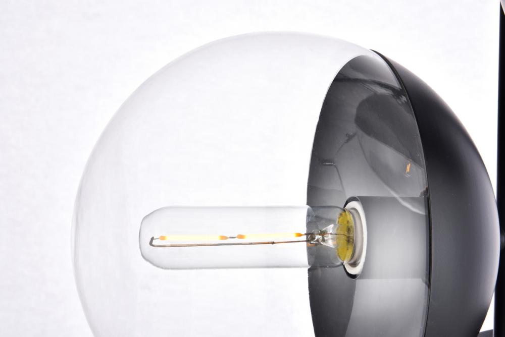 Refined style with a practical design, Eclipse hanging pendant lamps bring cosmopolitan sophistication anywhere, especially to an entryway, office, bathroom, bedroom, or kitchen. The smooth iron frame features a disk-shaped canopy and comes in a black finish. An adjustable black cord allows you to vary the hanging height from 23.6 to 96 inches. A touch of color on top of the clear spherical glass shade brings character to this classic style. Living in the big city has never been this easy.