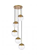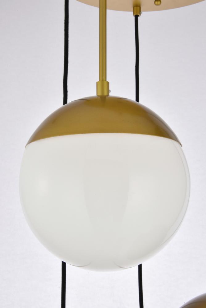 Elegant LD6078BR - Eclipse 5 Lights Brass Pendant With Frosted White Glass