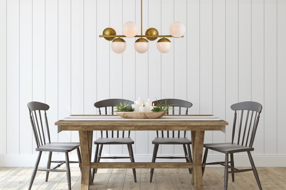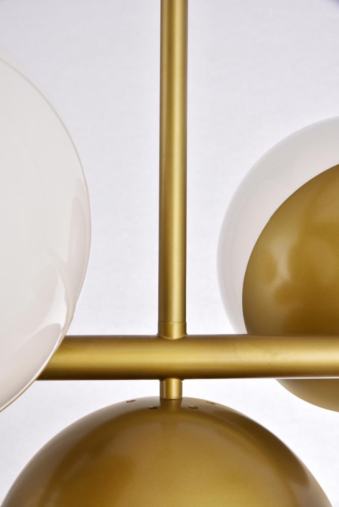 Elegant LD6078BR - Eclipse 5 Lights Brass Pendant With Frosted White Glass