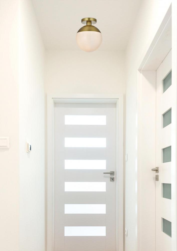 Refined style with a practical design, Eclipse flush mount bring cosmopolitan sophistication anywhere, especially to an entryway, office, bathroom, bedroom, or kitchen. The smooth iron frame features a disk-shaped canopy and comes in a satin gold or chrome finish. A touch of color on top of the clear or frosted white spherical glass shade brings character to this classic style. Living in the big city has never been this easy.