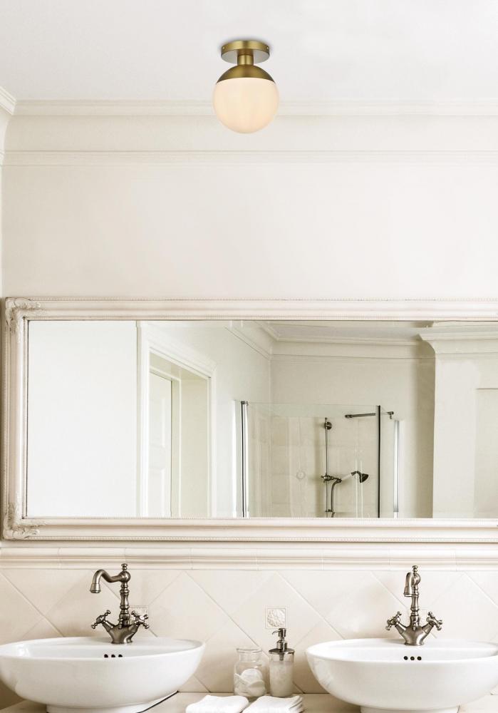 Refined style with a practical design, Eclipse flush mount bring cosmopolitan sophistication anywhere, especially to an entryway, office, bathroom, bedroom, or kitchen. The smooth iron frame features a disk-shaped canopy and comes in a satin gold or chrome finish. A touch of color on top of the clear or frosted white spherical glass shade brings character to this classic style. Living in the big city has never been this easy.