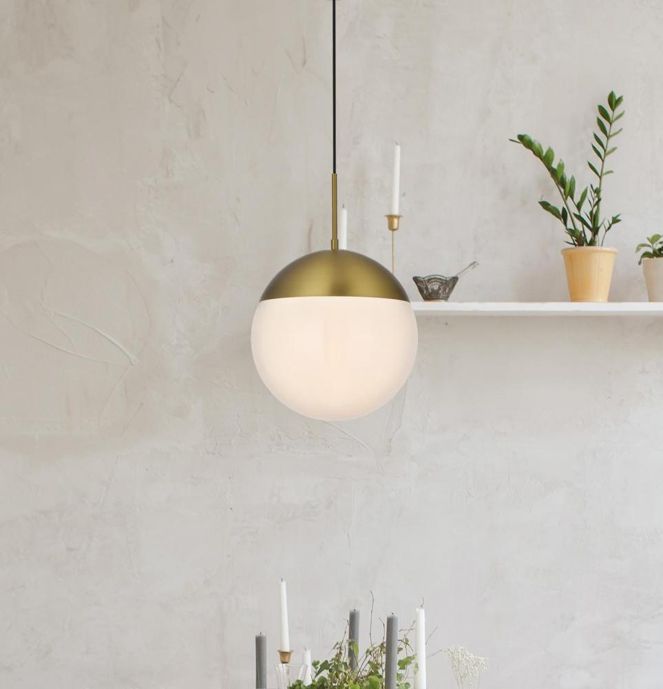 Clean lines and modern whimsy--that's the Eclipse Collection of pendant lamps. Its single light makes it perfect for any small apartment or room space, but its also a perfect addition to any larger rooms that requires illumination, such as a dining room or living room. Available in a satin gold, black, chrome, or brass finish with either a round clear or frosted white glass shade, it won't be too hard to fit this versatile lighting fixture in your home (light bulbs not included).
