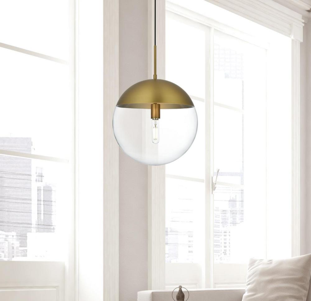 Clean lines and modern whimsy--that's the Eclipse Collection of pendant lamps. Its single light makes it perfect for any small apartment or room space, but its also a perfect addition to any larger rooms that requires illumination, such as a dining room or living room. Available in a satin gold, black, chrome, or brass finish with either a round clear or frosted white glass shade, it won't be too hard to fit this versatile lighting fixture in your home (light bulbs not included).