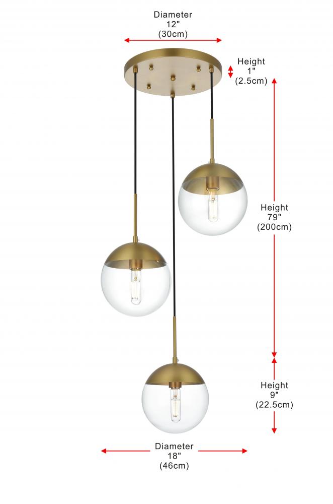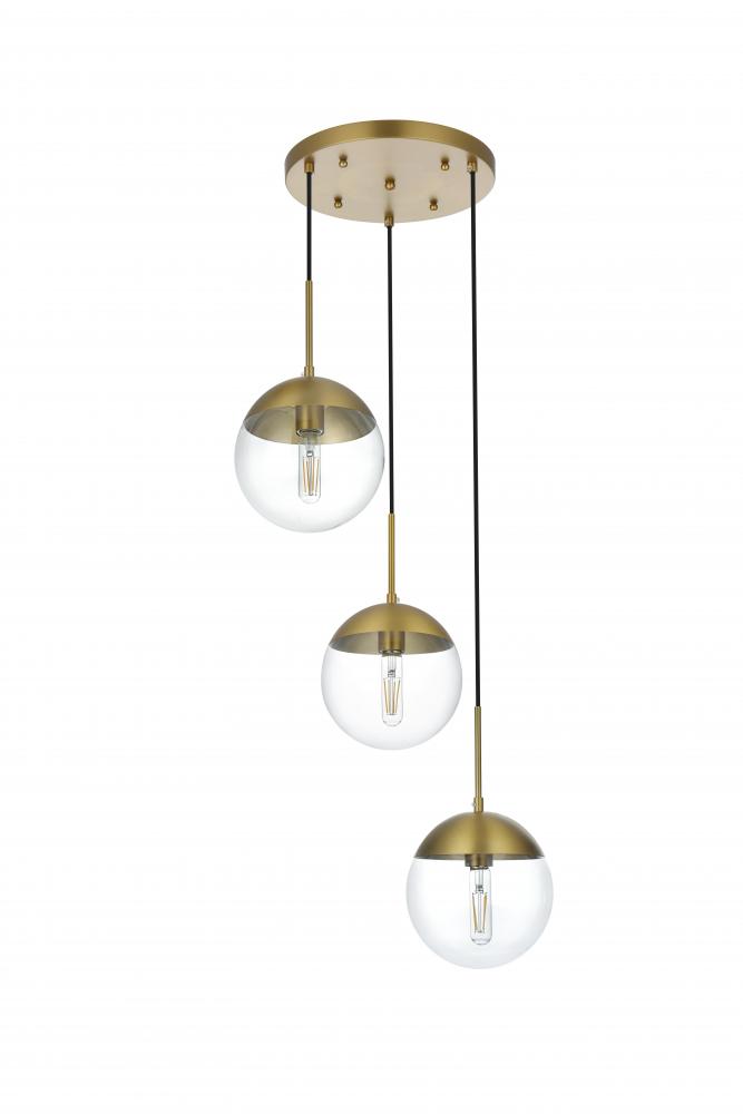 Elegant LD6129BK - Eclipse 3 Lights Black Pendant With Clear Glass