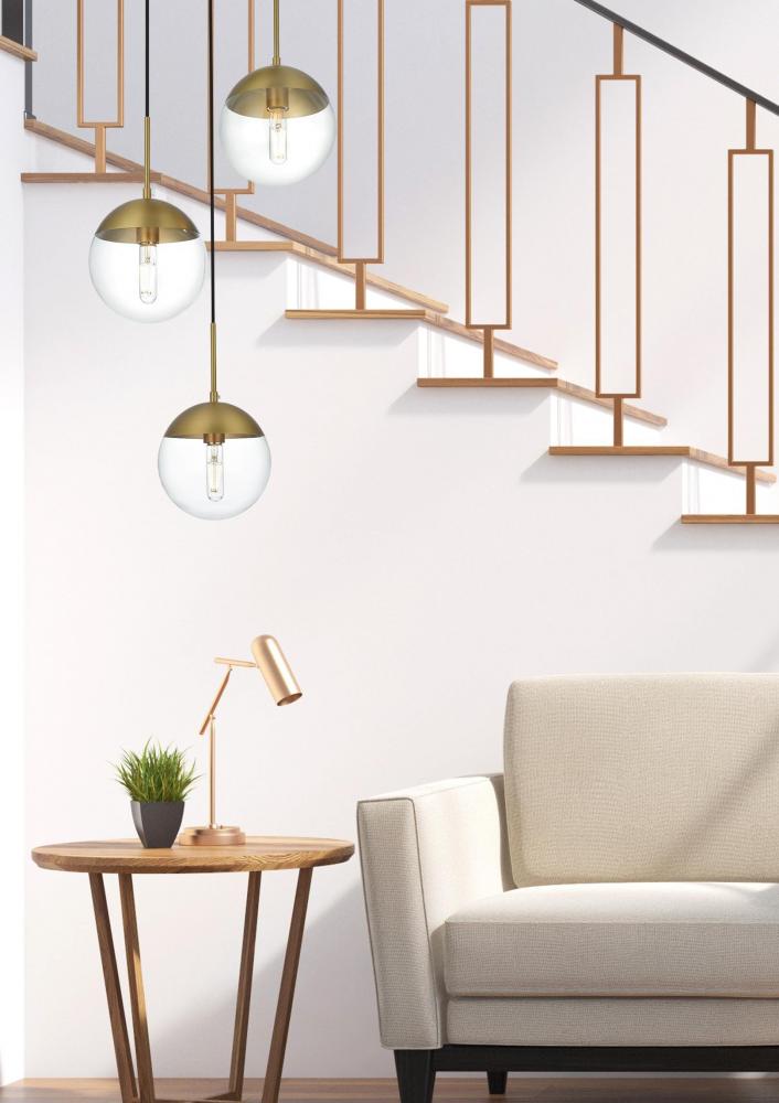 Refined style with a practical design, Eclipse hanging pendant lamps bring cosmopolitan sophistication anywhere, especially to an entryway, office, bathroom, bedroom, or kitchen. The smooth iron frame features a disk-shaped canopy and comes in a satin gold or black finish. An adjustable black cord allows you to vary the hanging height from 16 to 78 inches. A touch of color on top of the frosted white or clear spherical glass shade brings character to this classic style. Living in the big city has never been this easy.