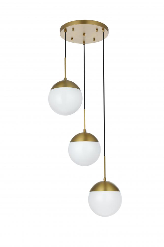 Elegant LD6078BR - Eclipse 5 Lights Brass Pendant With Frosted White Glass