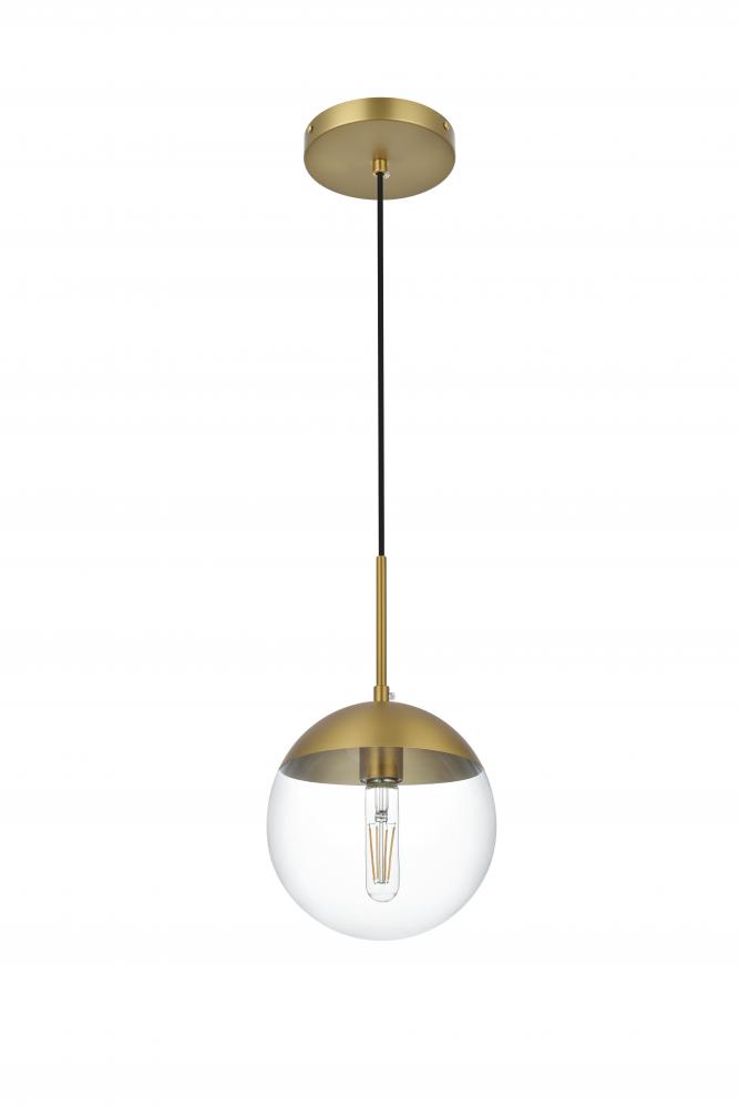 Clean lines and modern whimsy--that's the Eclipse Collection of pendant lamps. Its single light makes it perfect for any small apartment or room space, but its also a perfect addition to any larger rooms that requires illumination, such as a dining room or living room. Available in a satin gold, black, chrome, or brass finish with either a round clear or frosted white glass shade, it won't be too hard to fit this versatile lighting fixture in your home (light bulbs not included).
