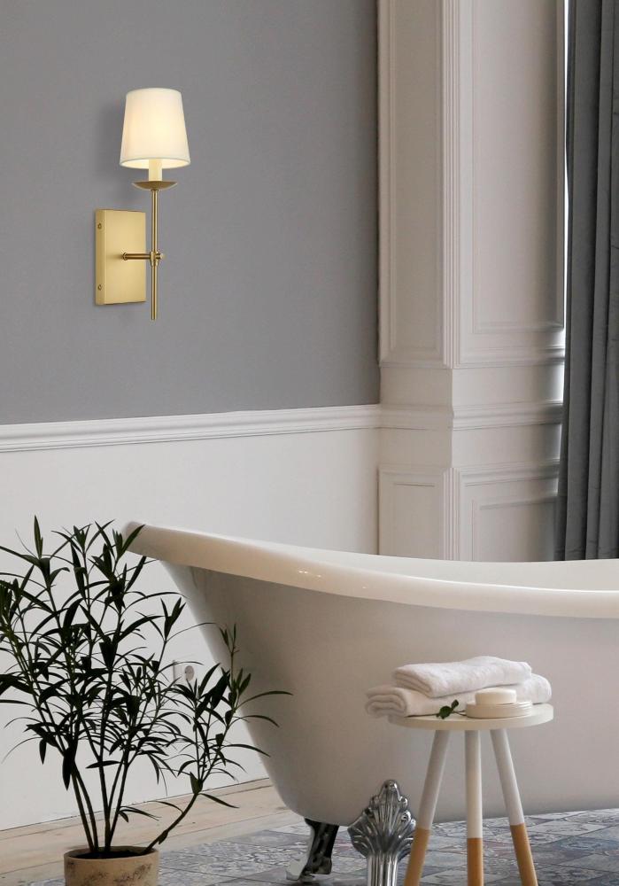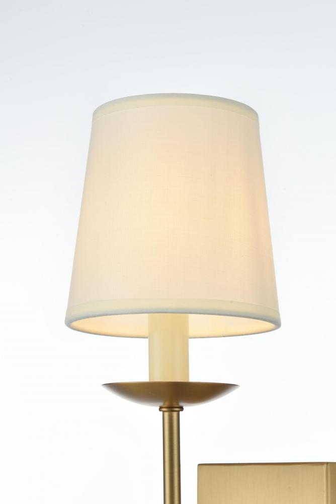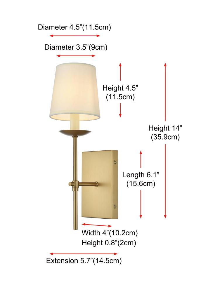Add a touch of timeless elegance to your home with this versatile wall sconce, designed to complement most room. Featuring a slender metal arm and a round backplate, this fixture is available in chrome, black, brass, or burnished nickel finishes to match a variety of interior styles. The soft, tapered fabric shade emits a gentle, ambient glow, making it perfect for creating a cozy and welcoming atmosphere. This wall sconce uses one E12 socket bulb (not included) and is compatible with dimmable bulbs, giving you the flexibility to set the right mood for any occasion. Whether placed in a hallway, bedroom, or living room, this sconce brings understated sophistication to your space with its classic silhouette and clean lines.
