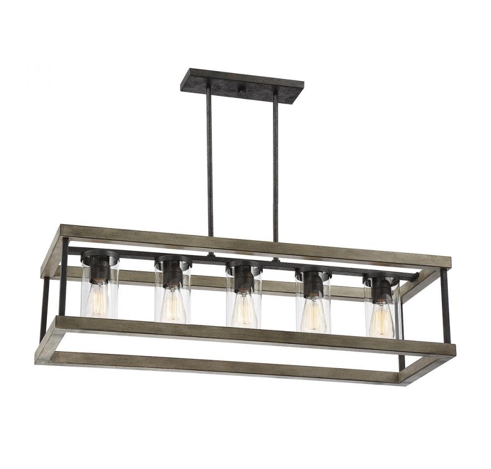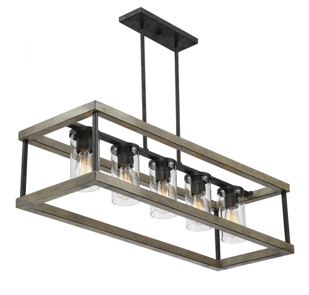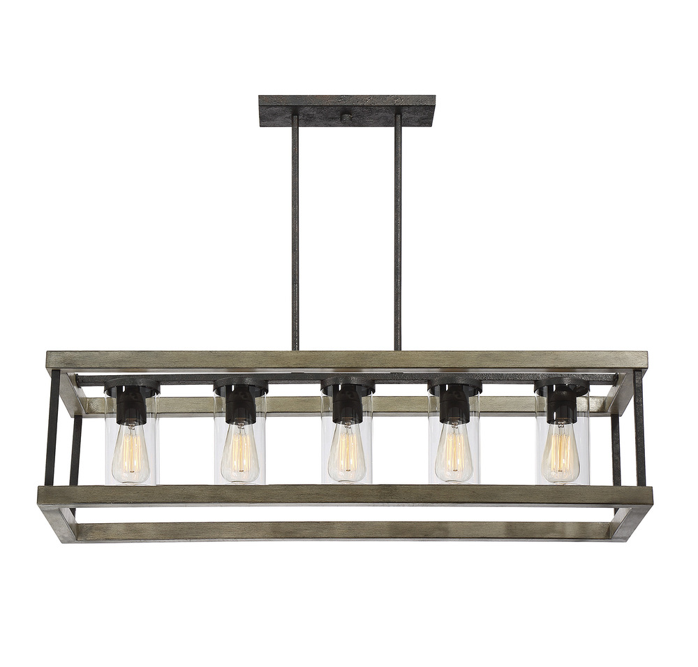 Looking for high end outdoor lighting to turn a porch or patio into a beautiful exterior living space? The Eden 5-light outdoor rectangular chandelier from Savoy House is a great choice. This gorgeous exterior light fixture features a rectangular metal frame coated with a Weathervane finish to give it a wonderfully rustic wood look. Exposed bulbs are protected by clear glass cylinders mounted on a metal bar running through the center of the fixture. This garden chandelier is damp area rated, so it’s built to withstand the elements when enjoyed in a covered area. It offers a hanging height from 13" to 67", and its canopy is adaptable for sloped ceilings. It’s the ideal outdoor porch lighting for spaces with rustic and transitional décors.