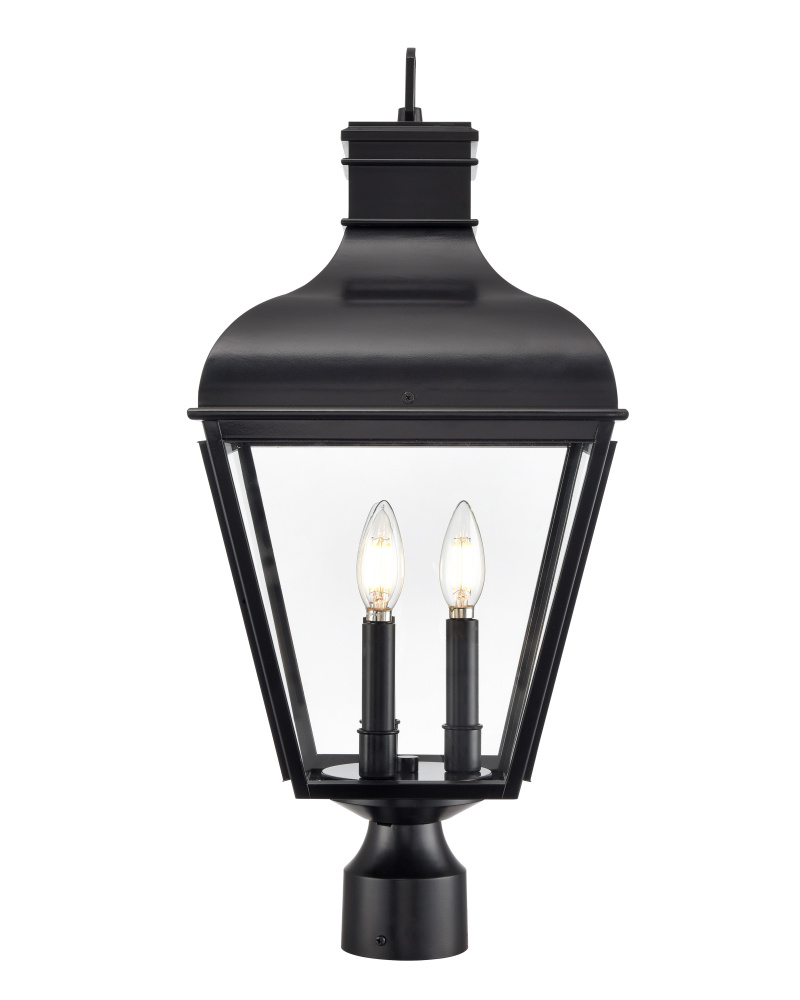 Elegant Edwardian-style gas lamps are reimagined with the Edenton Family of outdoor lighting. Available as 2-, 3-, and 4-light lanterns, the fixtures are finished in durable powder coat black and suspended on traditional barn-style joists cantilevering out from the wall for a look of architectural distinction. Whether flanking the entryway, or illuminating walkways or the deck, these refined fixtures make a tasteful design statement.