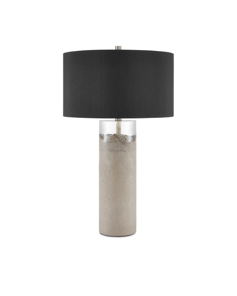 A glance at the Edfu Table Lamp leaves the impression that a clear column has been filled with sand, but this gray table lamp is made of concrete and composite that has been merged into one single piece. The concrete portion that anchors the lamp has a surface that looks finely aged. This and the fluted delicacy where it joins the clear material strikingly imitate desert-blown sand.