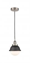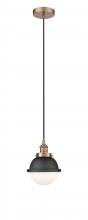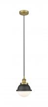 Edison - 1 Light - 7 inch - Antique Brass - Matte Black Hampden 6" with Matte White glass Shade - Mini Pendant