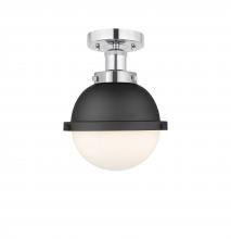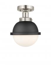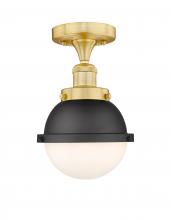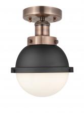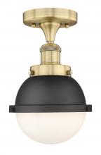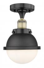 Edison - 1 Light - 7 inch - Antique Brass - Matte Black Hampden 6" with Matte White glass Shade - Semi-Flush Mount