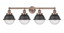 Edison - 4 Light - 34 inch - Antique Brass - Matte Black Hampden 6" with Clear glass Shade - Bath Vanity Light