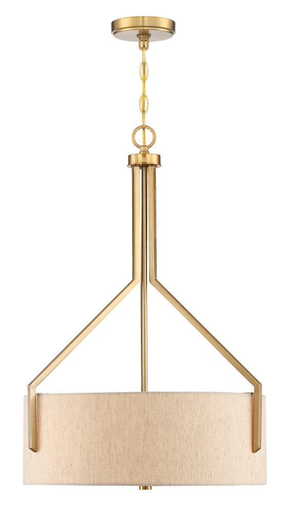 Brushed Gold Pendant with Beige Linen + Etched Diffuser shade ideal for today's interiors