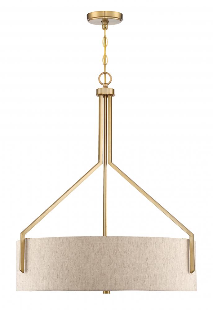 Brushed Gold Down Pendant with Beige Linen + Etched Diffuser shade ideal for today's interiors