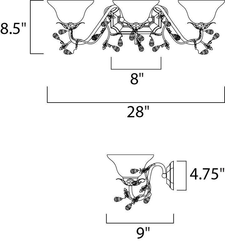One of our most popular collections, Elegante combines lighting with decorating. Delicate leaves and crystals top the wrap-around vines. Offered in Etruscan Gold or Oil Rubbed Bronze.