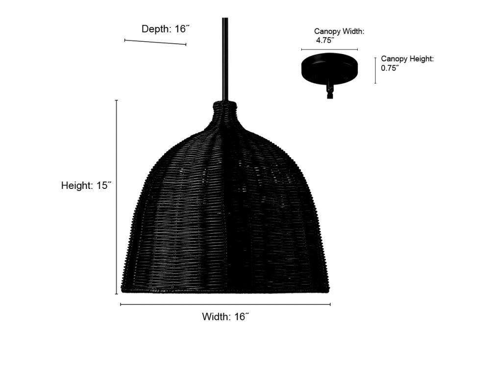 Elise 16" Wide 1-Light Pendant - Matte Black