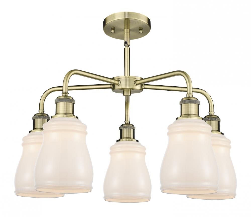Ellery - 5 Light - 23 inch - Antique Brass - White Shade - Chandelier