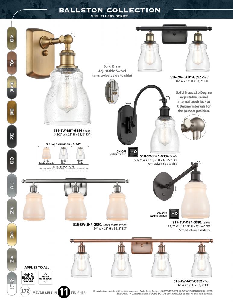 The Ballston collection is comprised of heavy cast components that give the fixture a sturdy contemporary look. We offer the fixture in 11 finishes with a Bare Bulb look or with over 100 possible metal and glass shade options that can change the style to f