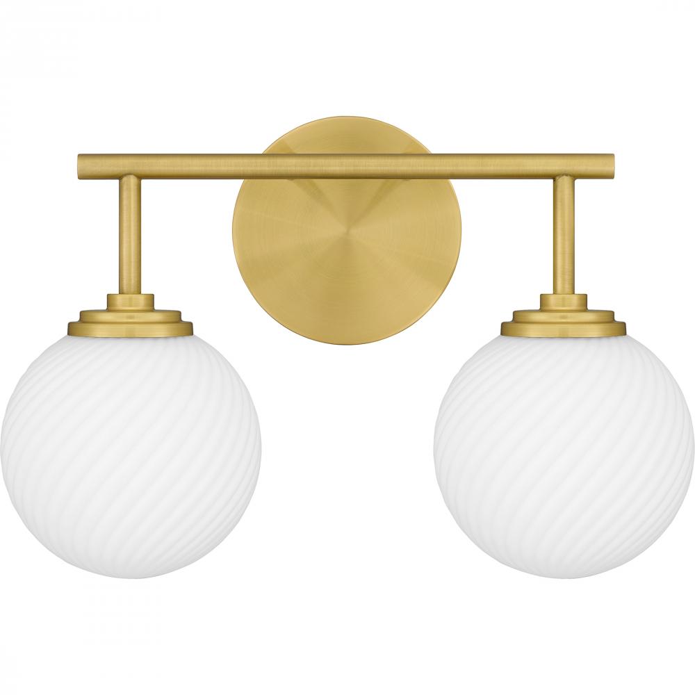 Make a home spa-inspired statement with Eloise bath lights. The spherical shades are comprised of opal etched swirled glass, creating a unique look that softens the light in style. Paired with an aged brass finish, Eloise is the perfect complement to any m