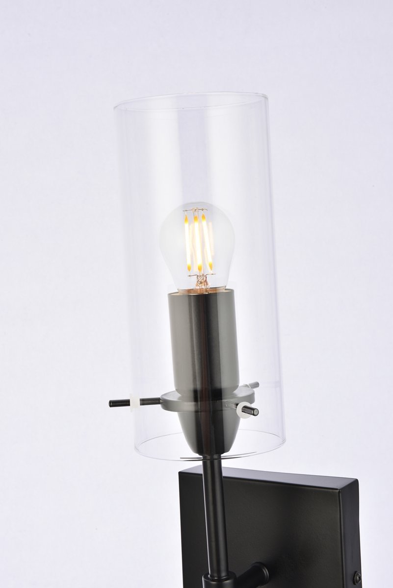 Brighten your space with the Elsreth Collection wall sconce. The cylinder glass and straight arm creates a modern candle lit look. Available in black or brass finish this lamp will illuminate the room. This product is dimmable and requires one E26 socket. Light bulbs not included.