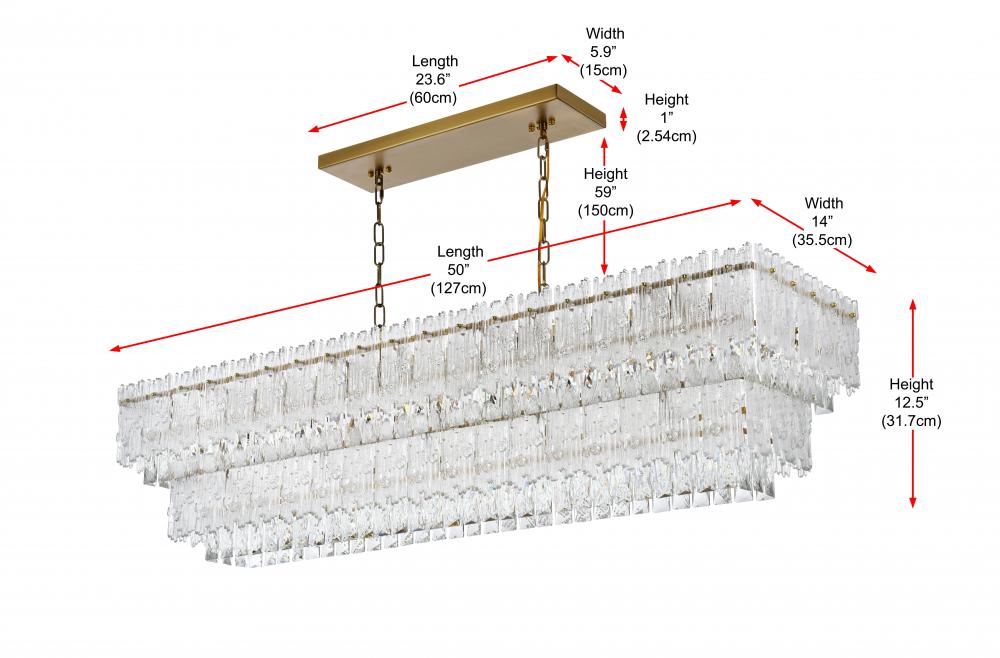 Elegant 1780G50SG - Emilia Hang L50"W14"H12.5" E12 L8 Satin Gold