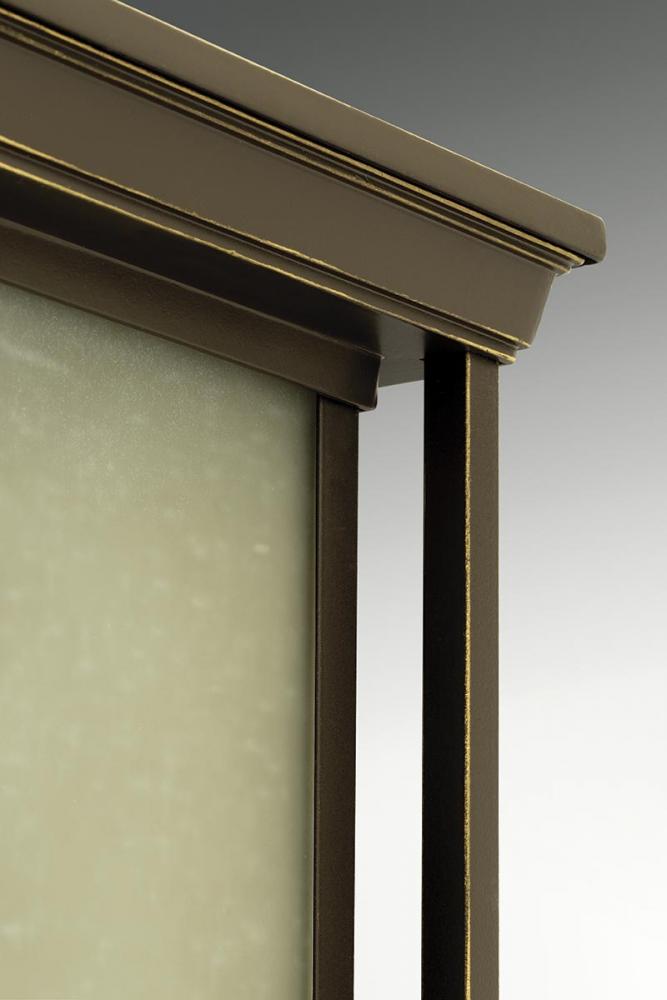 One-light large wall lantern with a Craftsman-inspired modern silhouette, Endicott offers visual interest when both lit and unlit. The elongated frame is elegantly finished with linen glass diffuser.