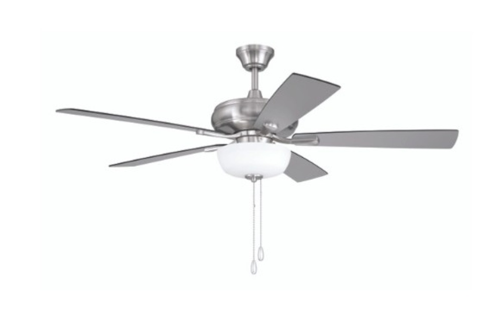 The Eos 52" ceiling fan with 2-light white frost glass bowl features a smooth, 3-speed, reversible motor, updated blade arms, and reversible custom 52" blades. Optional remote controls are available (Sold Separately).