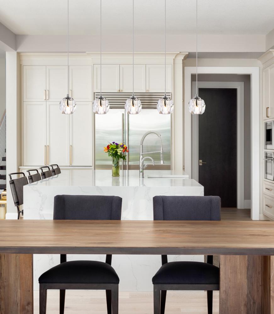 Like enchanting bubbles of air surfacing from the fathoms of the deep sea, the Eren contemporary hanging pendant adds lighting with richness and grace. The layering of clear crystal globes offer softened, harmonious light to match a variety of home décor. Creating an environment of sophistication, this beautiful hanging pendant adds drops of magic to express your refined style.