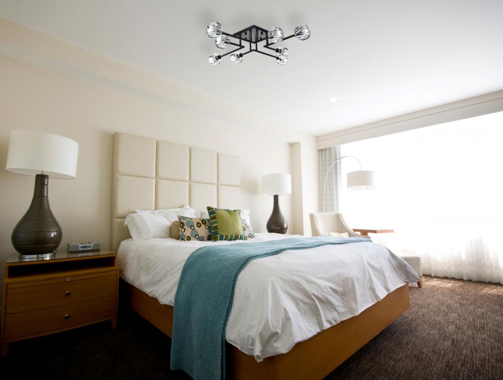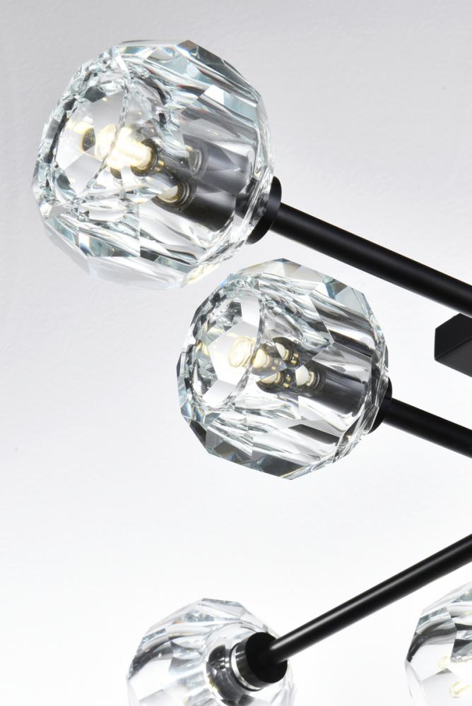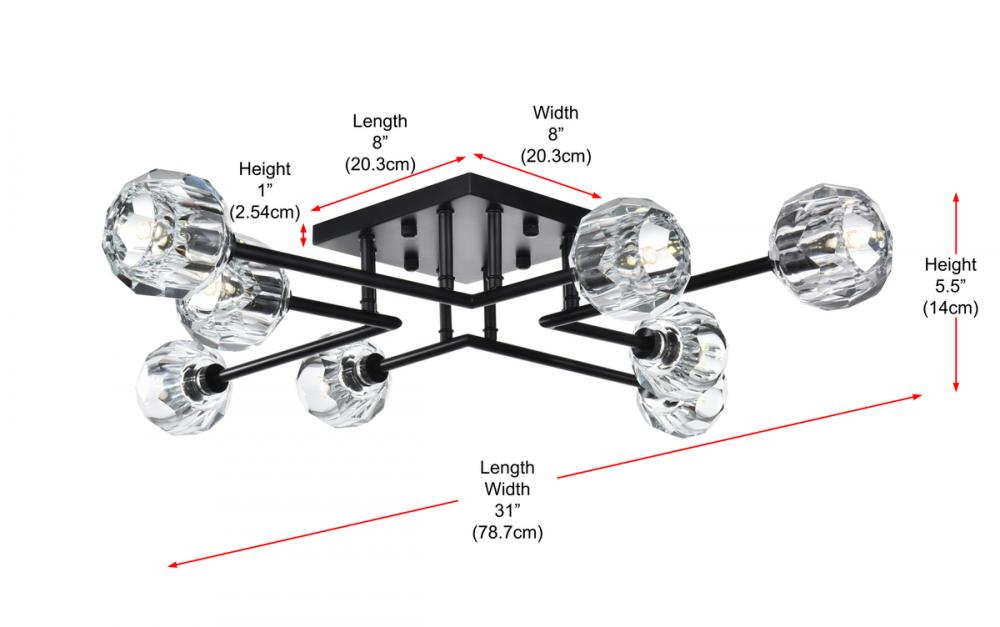 Introducing the Eren 31-inch flush mount— Introducing our 31-inch flush mount—a captivating addition that effortlessly enhances your space with a touch of contemporary sophistication, making a statement with its presence. Eight lights adorned with faceted crystal glass shades cast a luxurious and dazzling radiance, creating an atmosphere of timeless elegance. Crafted with durability in mind, the robust iron base complements the flush mount's contemporary design with a touch of industrial elegance. with a flush design, this fixture hugs the ceiling, delivering both space-saving practicality and elegant style. Redefine your space with the perfect blend of style, durability, and radiant illumination.