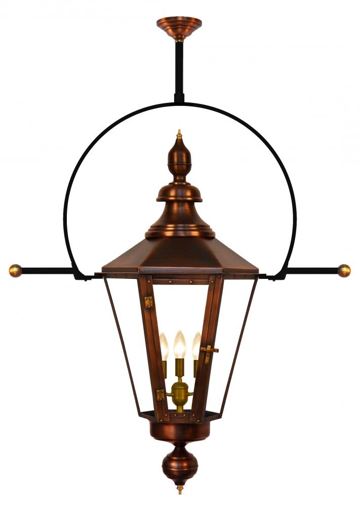 Size 63 Electric Copper Lantern, 3 candelabra base sockets, with Classic Yoke, Ladder Rest