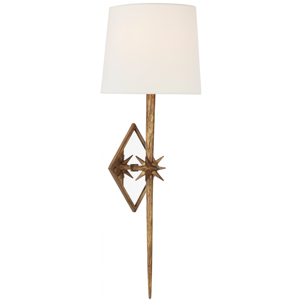 Etoile Large Tail Sconce in Gilded Iron with Linen Shade