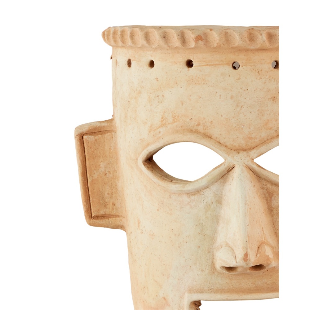 Made of clay, the Etu Washed Mask Set includes two white masks that are medieval in their attitudes. The whitewash finish is rubbed onto the white sculptures so the clay shows through in spots to enhance the feel that these are aged artifacts. These are among our artisanal pieces that will be conversation starters in the spaces they will ornament.