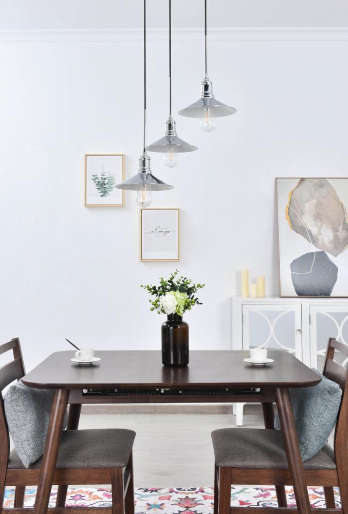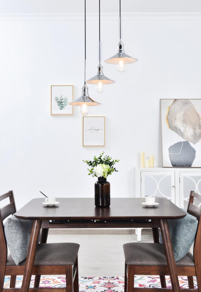 The lilting personality of the Etude pendant lamp in a chrome finish will have you singing for days! Whether the adjustable arms catch your attention or its classic lampshade that makes you speechless, this 3-light pendant lamp will surely improve the style of any room in your home.