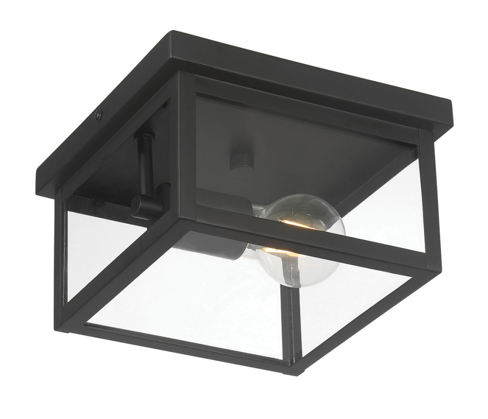 The Evanton outdoor flush mount features clear glass panels on a square frame.