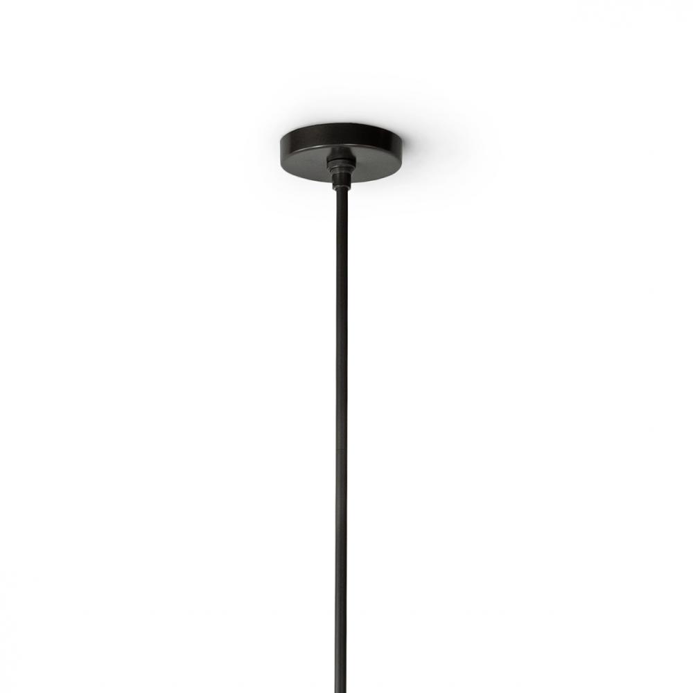 Powder coated metal frame wrapped with hand-woven all-weather synthetic abaca. Pendant comes with a charcoal finished canopy hanging kit including 1 x 18" rod, 2 x 12" rods, 1 x 6" rod and 1 x 3" rod. BUlb is covered with a glass globe for protection from
