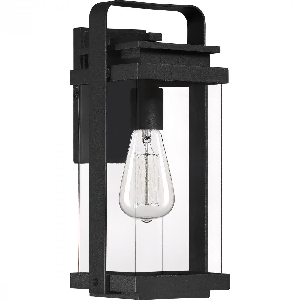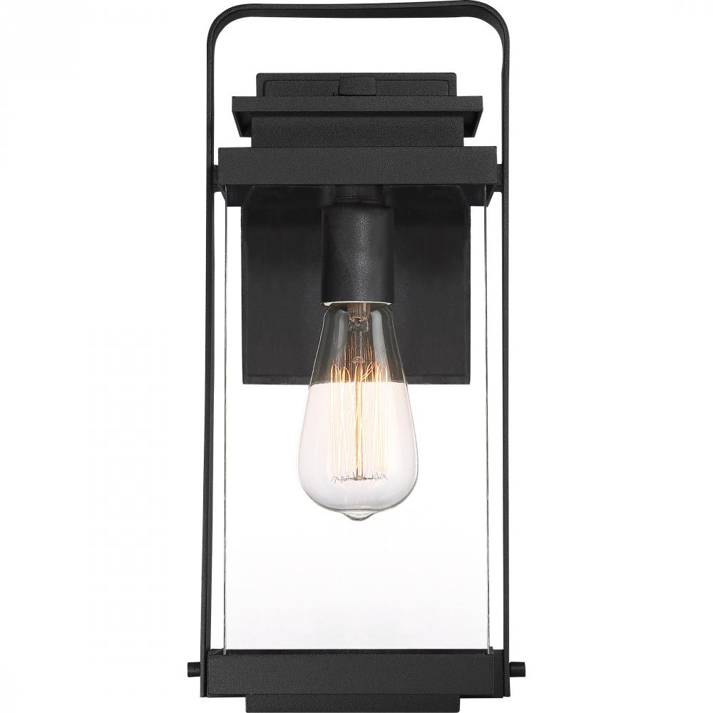 Traditional carriage lighting gets a 21st century face lift with the Exhibit collection. The robust frame features an oversized handle and rivet details, all finished in a modern earth black. It’s clean lines and clear glass panels provide an open, airy
